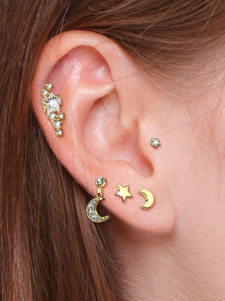 Dla pięknie ozdobionych uszu mamy duży wybór kolczków kolczyk do ucha, takich jak kolczyk helix i kolczyk Tragus oraz oczywiście piękny klasyczny kolczyk do ucha. Dzięki modnym kolczykom, takim jak kolczyk Conchkolczyk Daith lub Curated Ear (połączenie różnych kolczyków), uszy mogą być ozdobione w bardzo indywidualny sposób. Modne kolczyk helix i kolczyk Tragus przyciągają wszystkie spojrzenia dzięki naszym różnym rodzajom kolczyków, takich jak kolczyk labret, kółka do piercingu lub kolczyk sztanga.