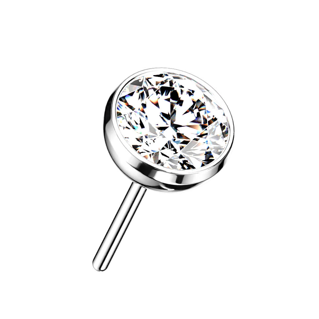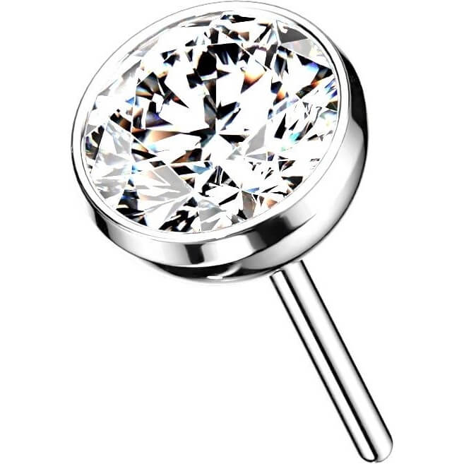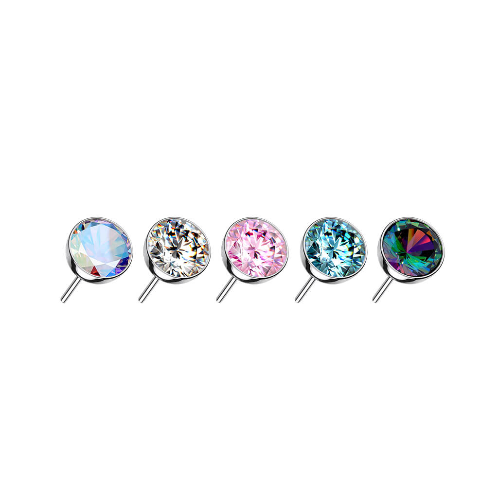 Co czyni tę końcówkę wyjątkową, to przepiękny, okrągły kamień cyrkoniowy, dostępny w szerokiej gamie kolorów - od klasycznej przezroczystości, przez delikatny róż, aż po hipnotyzujące barwy tęczy. Dostępna jest również w różnych kolorach wykończenia, takich jak różowe złoto, srebro, złoto i elegancka czerń, co pozwala na pełną personalizację Twojego looku.
