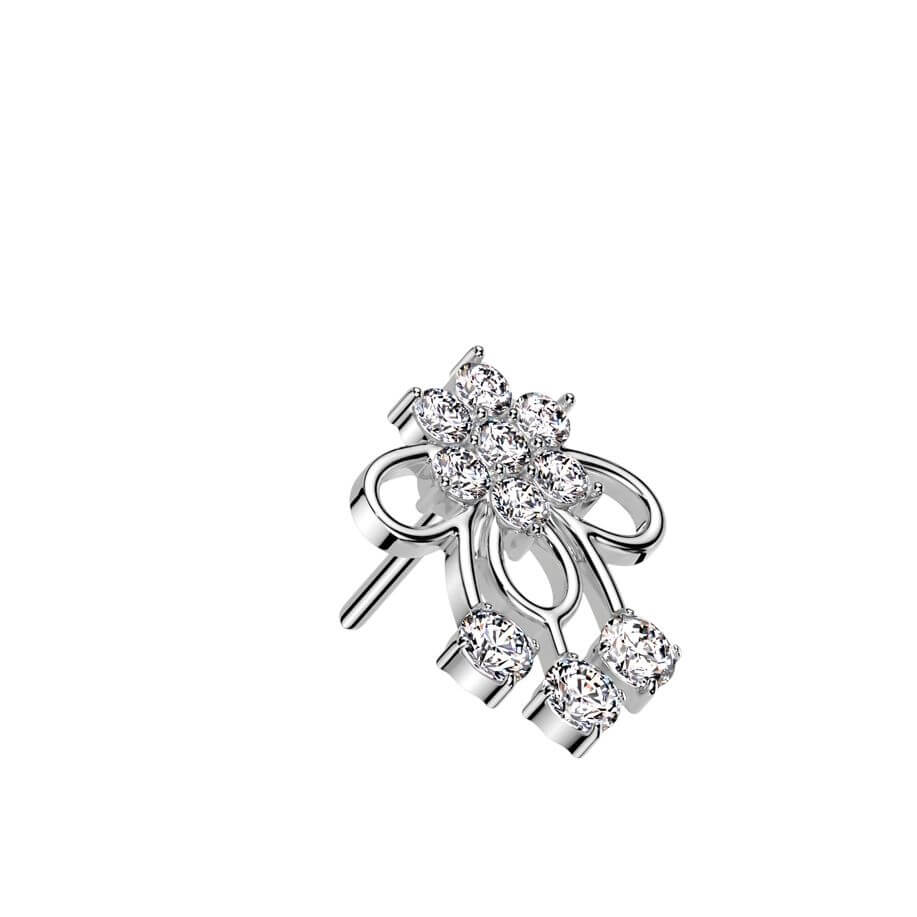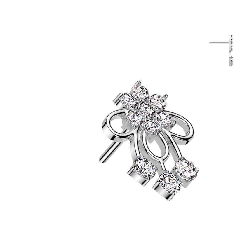 Złoto 585 nakrętka kwiatek wstążka cyrkonia push-in